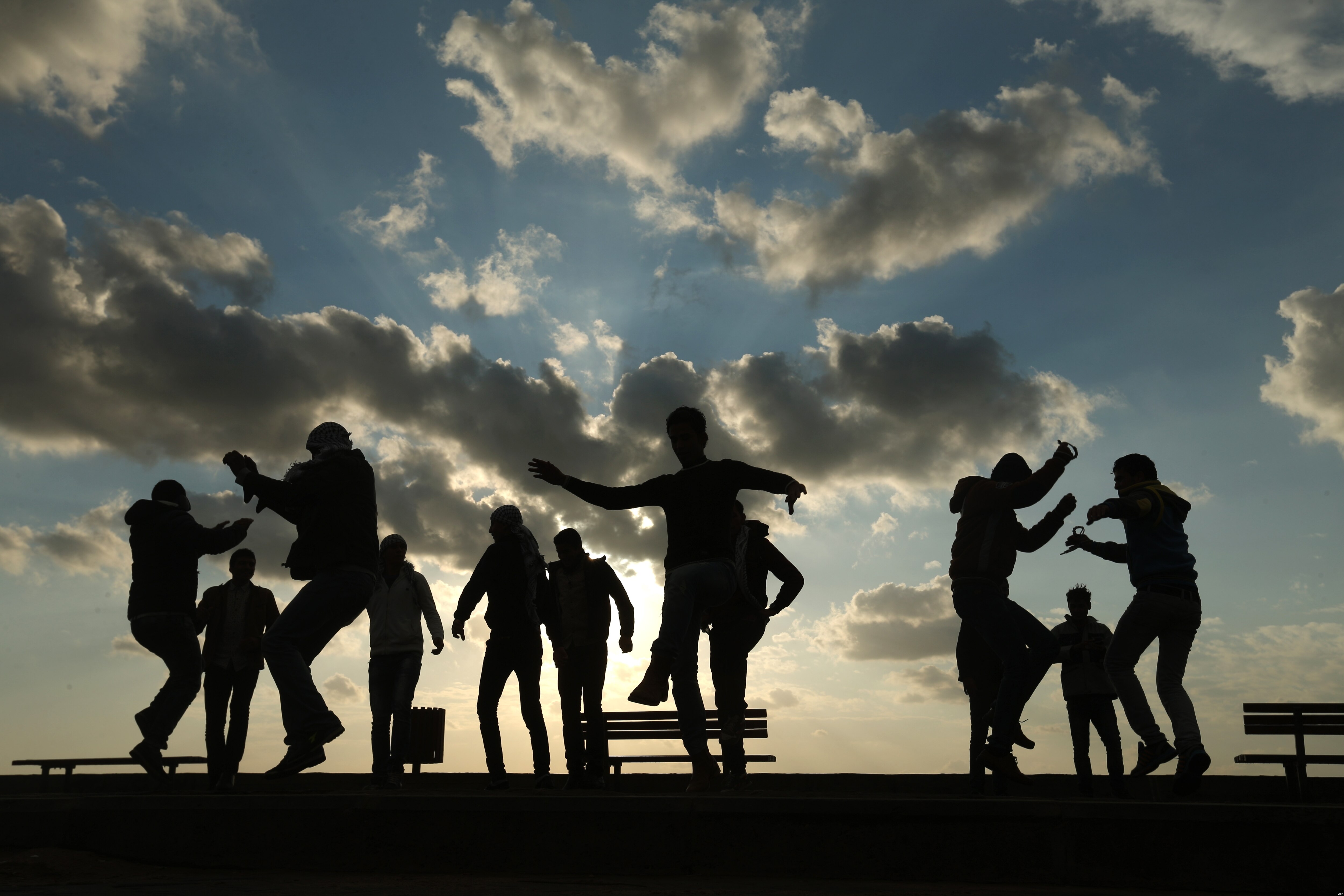 Palestinians celebrate the last day of the year at the sea port in Gaza City, Dec. 31, 2015.