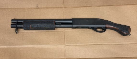 La policía incautó una escopeta recortada, un rifle tipo AR-15, el armazón de una pistola, diversas municiones, accesorios para armas de fuego y correo dirigido al sospechoso en el almacén.